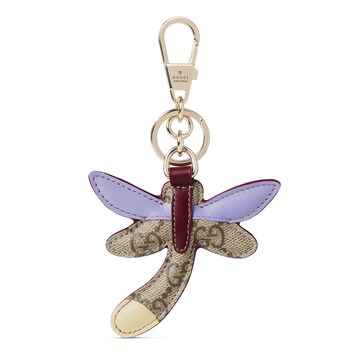 2025早秋系列推出多款配饰,卓力扬显活力主题。这款钥匙扣采用GG字母交织图案涂层织物打造,生动演绎蜻蜓造型,点缀浅金色调双G细节。