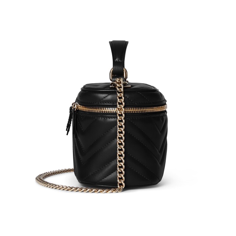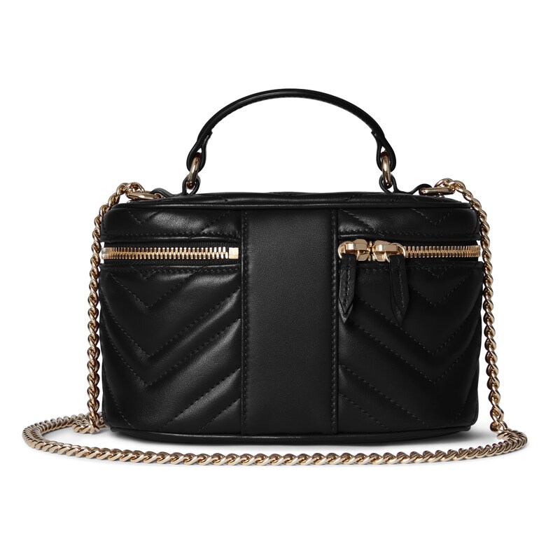 品牌标志性GG Marmont系列倾情推出多款富有现代感的时尚包袋。这款链式化妆包缀饰20世纪70年代初次亮相的品牌典藏标识。