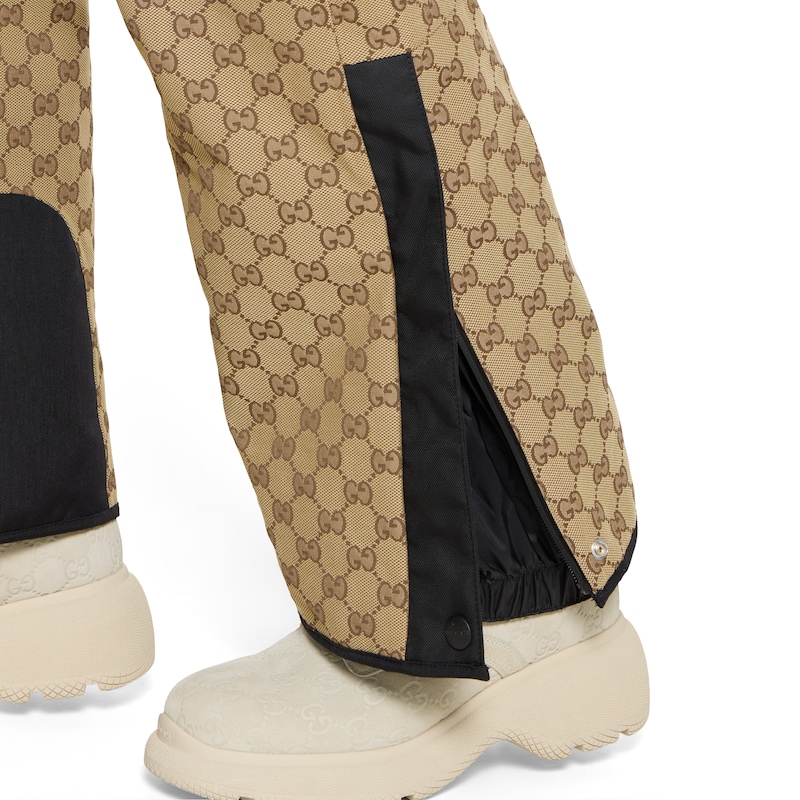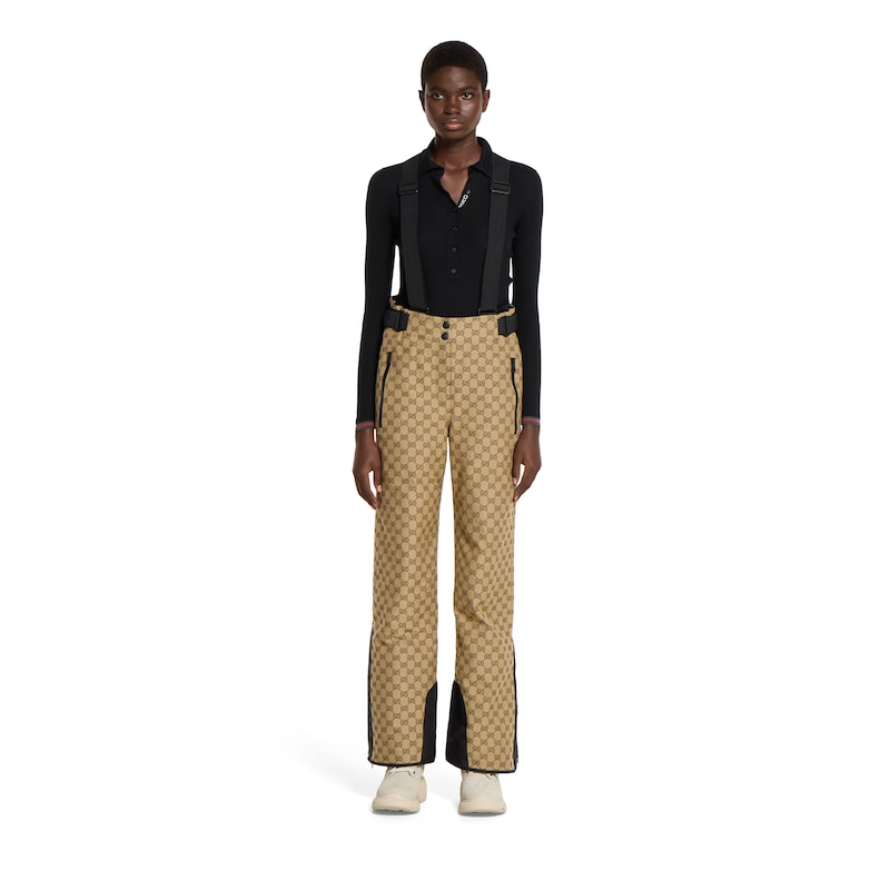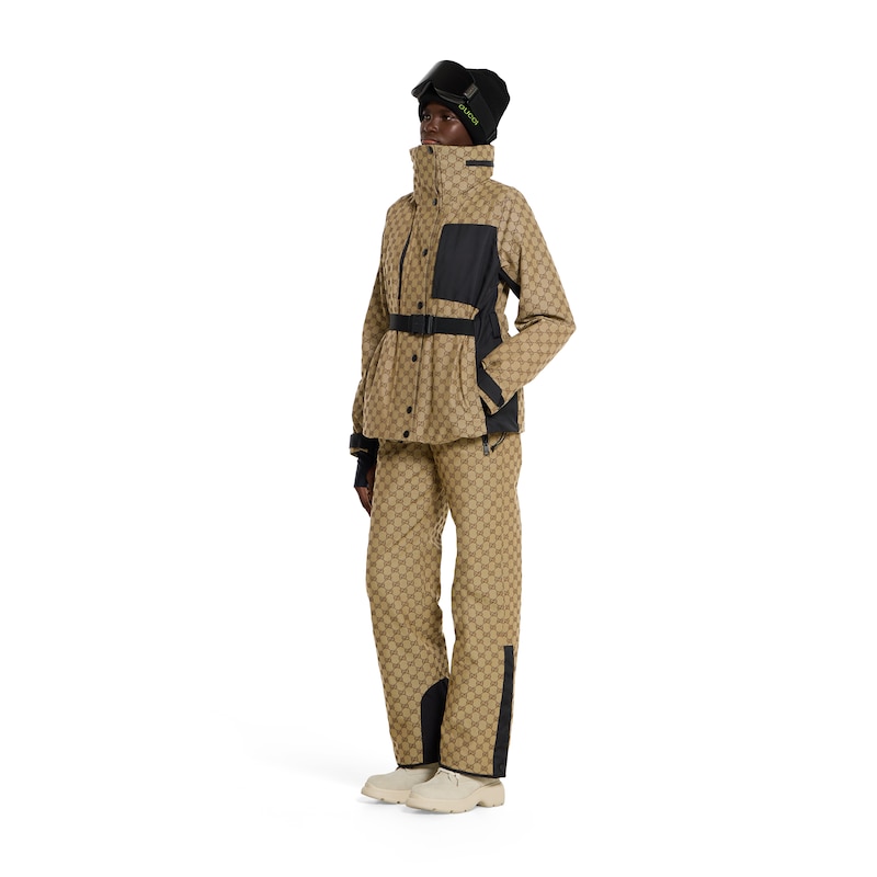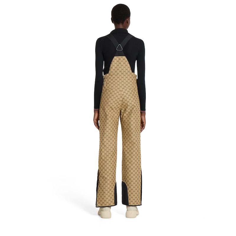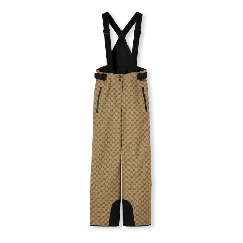 品牌推出首个冬季运动服系列Gucci Altitude,将出众性能与典藏元素巧妙融合。这款长裤选用三层GG锦纶提花面料精致而成,防水、防风、透气,并配以可调节肩带。