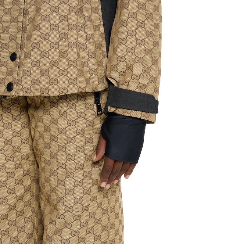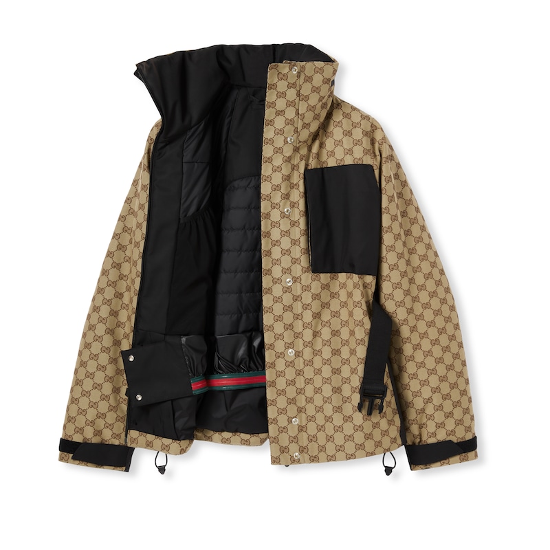 品牌推出首个冬季运动服系列Gucci Altitude,将出众性能与典藏元素巧妙融合。这款夹克采用立领和隐形兜帽设计,选用三层GG锦纶提花面料精致而成,防水、防风、透气。