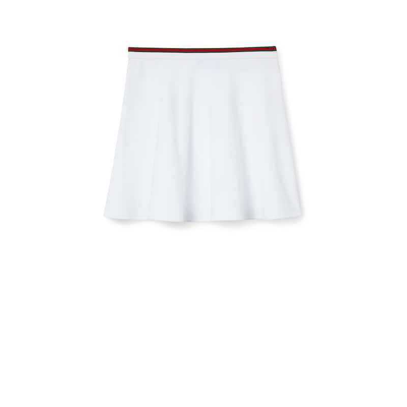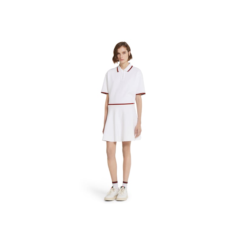 20世纪70年代,品牌与网球世界结下不解之缘,如今继续探索这一深厚渊源。标志性单品聚焦典藏细节(如条纹织带)和创新面料。这款珠地棉半身裙匠心缀饰红绿织带滚边和Gucci刺绣。