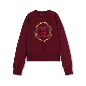 2026早春女士成衣系列致意Gucci时尚造型,以混色搭配趣致糅合品牌典藏元素与佛罗伦萨传承意蕴,呈现简洁风格与极繁设计等多元单品。这款卫衣甄选针织棉打造,巧妙融入饰缰绳刺绣互扣式双G印花。