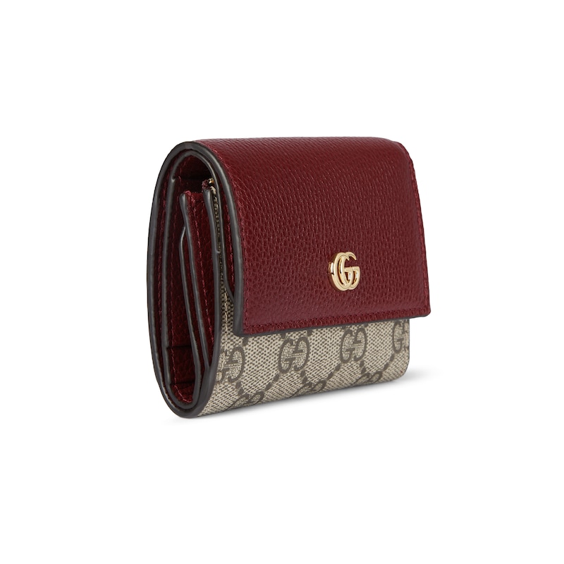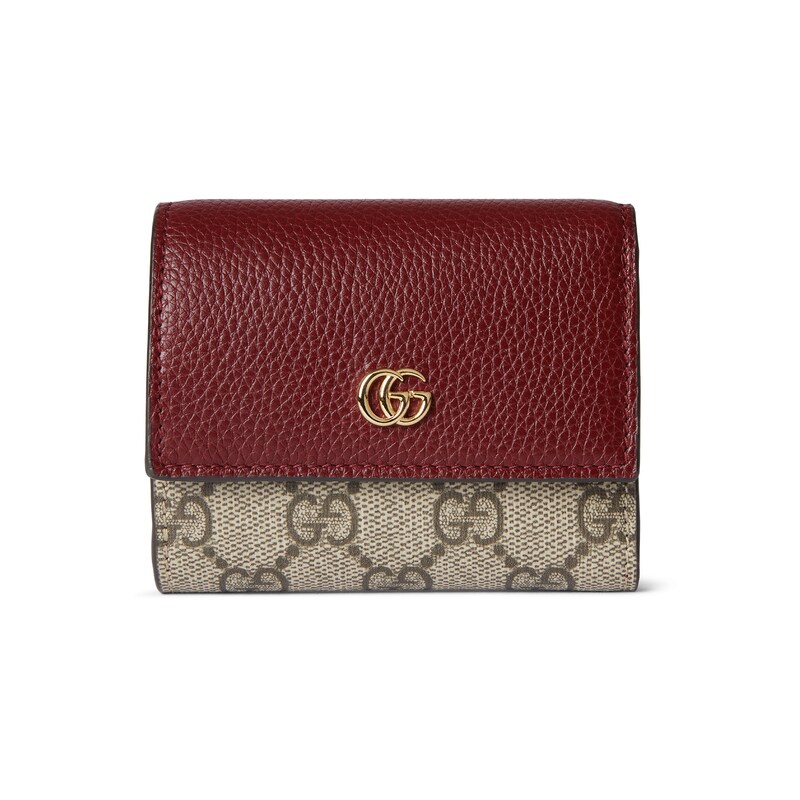 GG Marmont系列革新蕴聚多彩配色,并以全新功能弘彰标志性廓形。这款双色迷你钱包以古驰安可拉红皮革与米色和深棕色GG Supreme打造,巧妙融入双G细节,令整个设计魅力更显。