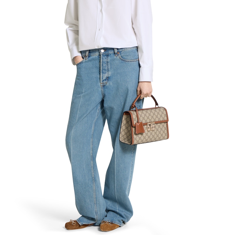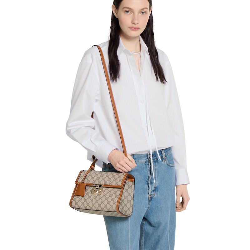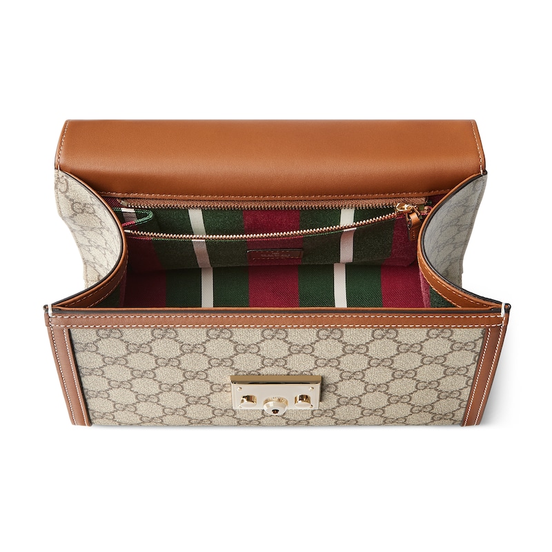 Padlock系列以现代廓形惊艳亮相2025早秋系列,解锁多种背携方式。此款式手提或斜挎皆宜,织带衬里致敬品牌标志性元素。
