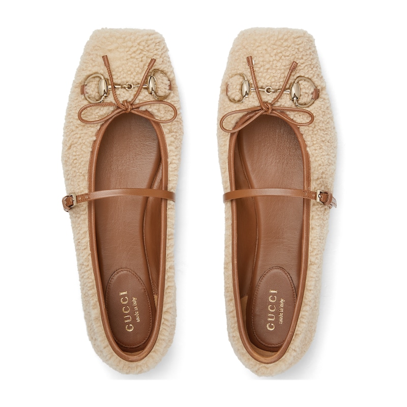 这款标志性马衔扣平底芭蕾舞鞋采用方形鞋头,搭配雅致的蝴蝶结细节,向传统芭蕾舞鞋款型致敬。这件单品以美利奴羊毛打造,匠心缀饰浅金色调马衔扣,尽显别样风采。“sacchetto”构造配以柔软加衬内底,打造出色穿着体验。