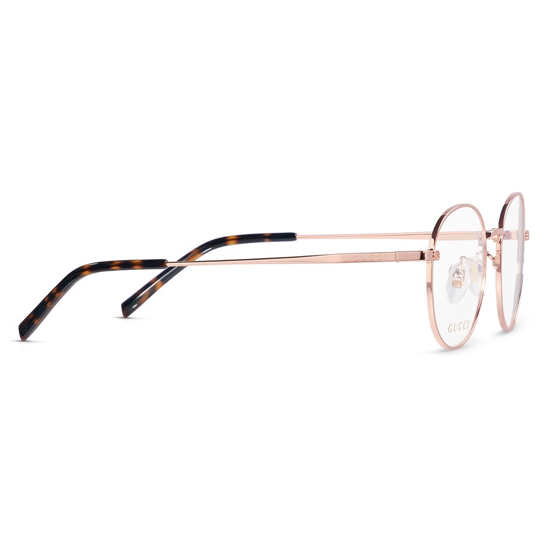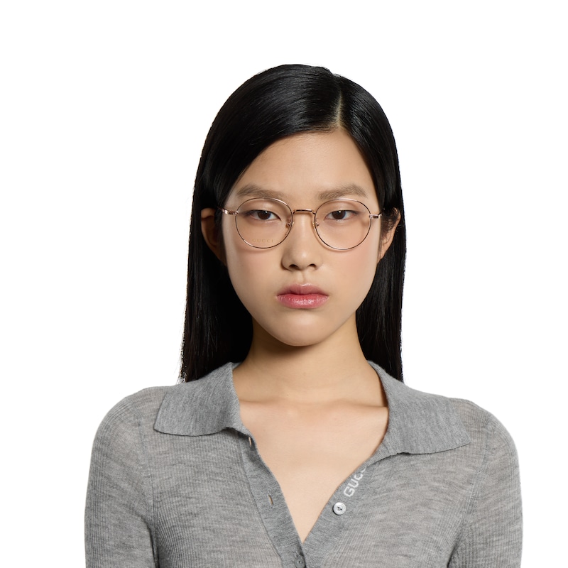 2025早秋眼镜系列巧妙糅合品牌备受青睐的经典造型,彰显时尚现代的品牌标识内涵。这款太阳眼镜匠心选用粉金色调金属镜框,巧妙融入互扣式双G和Gucci标识。