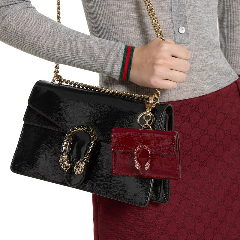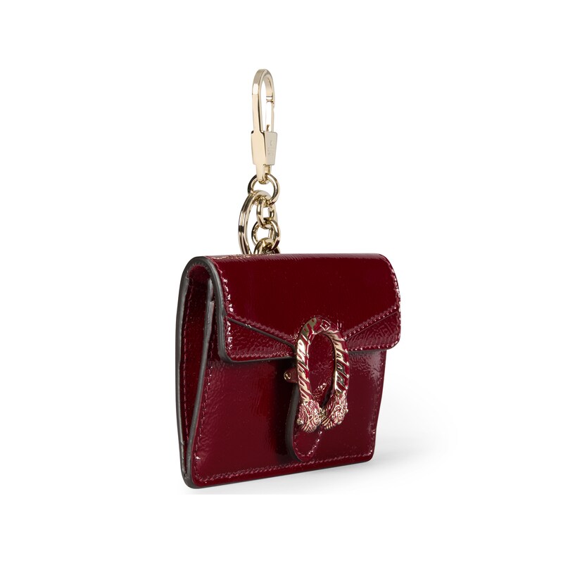 这款手拿包挂饰配有一个钥匙扣挂钩,可挂在手袋上作为配饰。廓形再现品牌珠宝收纳袋的典藏设计,可轻松取用Airpods耳机等必需品。