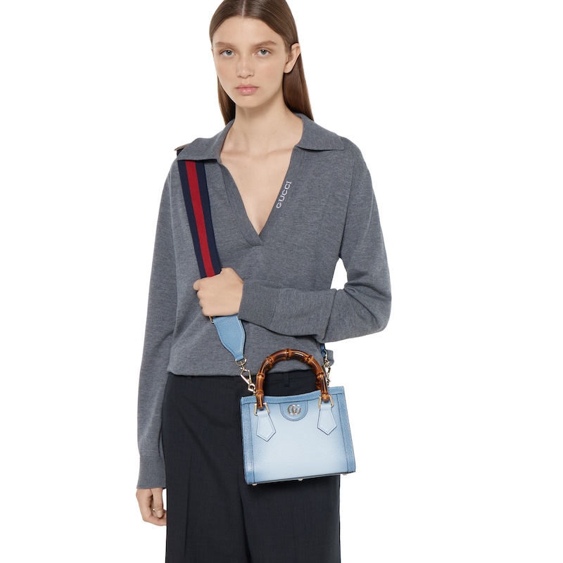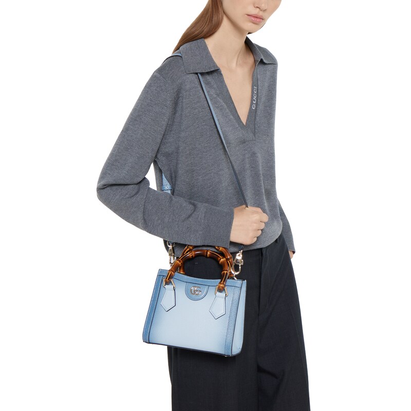 品牌标志性Gucci Diana系列心选渐变色粒面皮革,匠心融蕴竹节手柄,打造魅力包袋单品,为2025早秋系列增色添彩。这款托特包背法多样,既可斜挎亦可肩背。