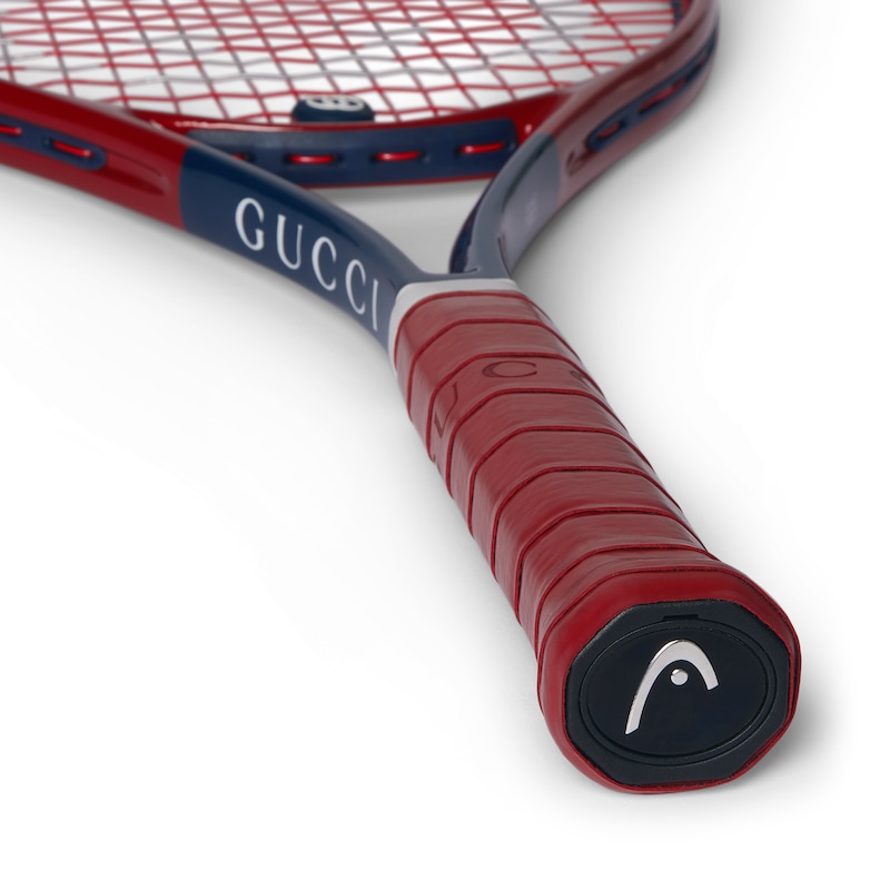 为致敬Gucci与网球世界的悠久渊源,品牌携手HEAD推出定制款Speed MP球拍。拍框饰以红蓝条纹织带,拍面红色球线勾勒出互扣式双G标识。这款Gucci x HEAD联名球拍兼具力量、掌控与造型,减震配件更是锦上添花。