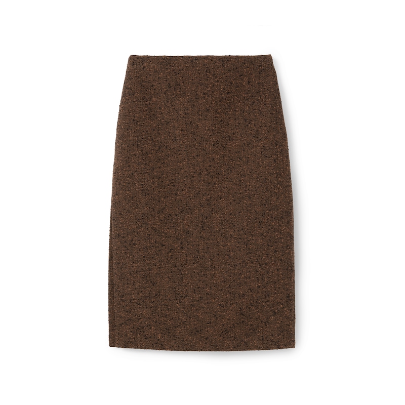 这款半身裙正面精心缀饰金属标识细节,为2025秋冬系列增添亮眼力作。这款单品采用全衬里设计,匠心搭配背面开衩与拉链开合。