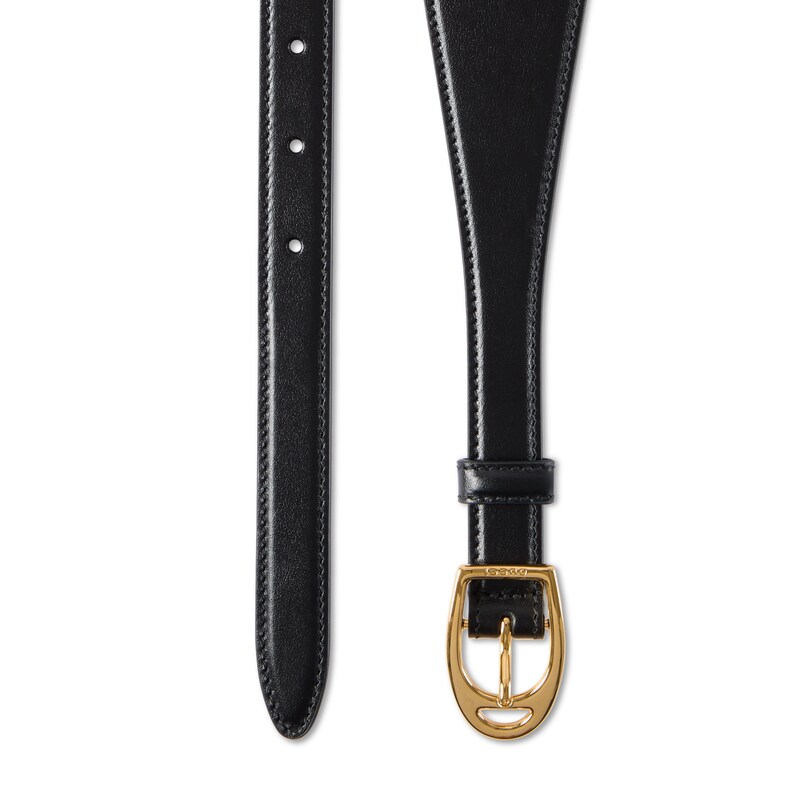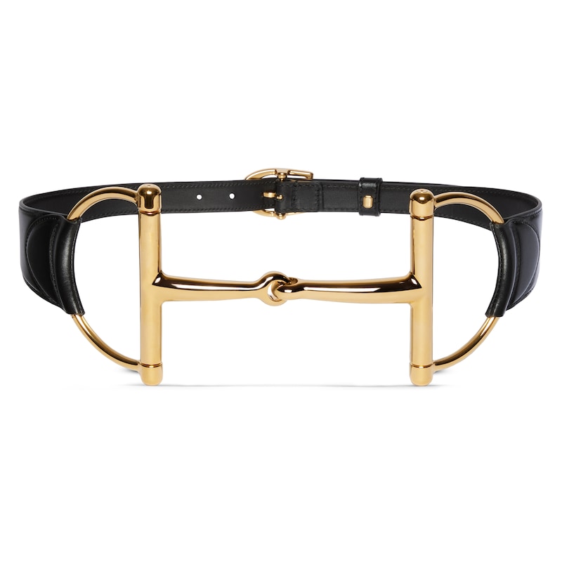 这款宽版腰带搭配金色调超大马衔扣细节,致意Gucci深厚传承,为2025秋冬系列再添新作。以黑色皮革匠心打造,展现优雅气韵与随性风范。