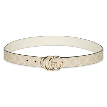 GG Marmont系列推出双面款式,揭幕新季风尚。这款腰带甄选柔软GG Supreme和皮革打造,缀饰标志性双G造型搭扣,一展别致韵调。