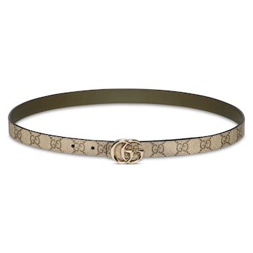 GG Marmont系列推出双面款式,揭幕新季风尚。这款窄版腰带以GG Supreme帆布和皮革打造,缀饰标志性双G造型搭扣,一展别致韵调。