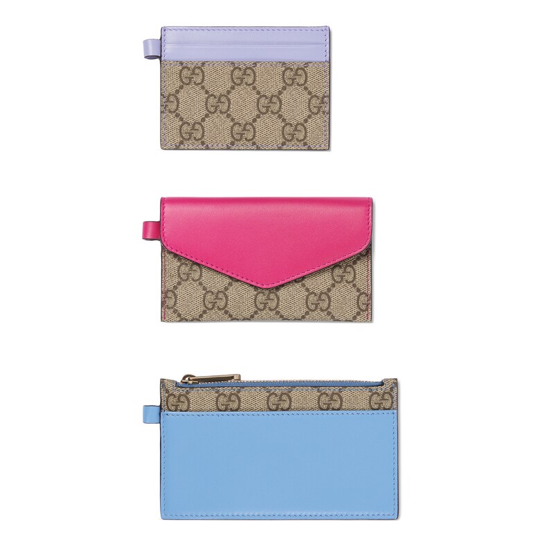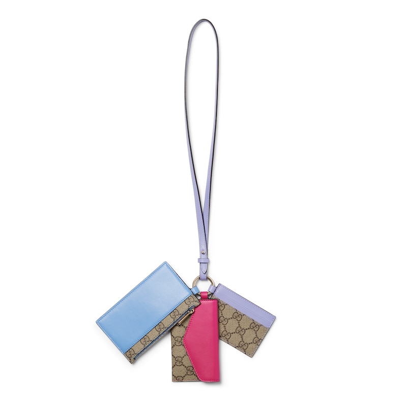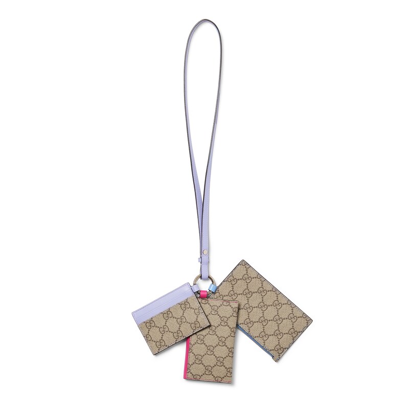 2025秋冬系列推出多款配饰,匠心诠释品牌经典主题。这款多功能挂绳采用GG Supreme匠心打造,配有三个小巧手拿包,缀饰色彩亮丽的皮革滚边。