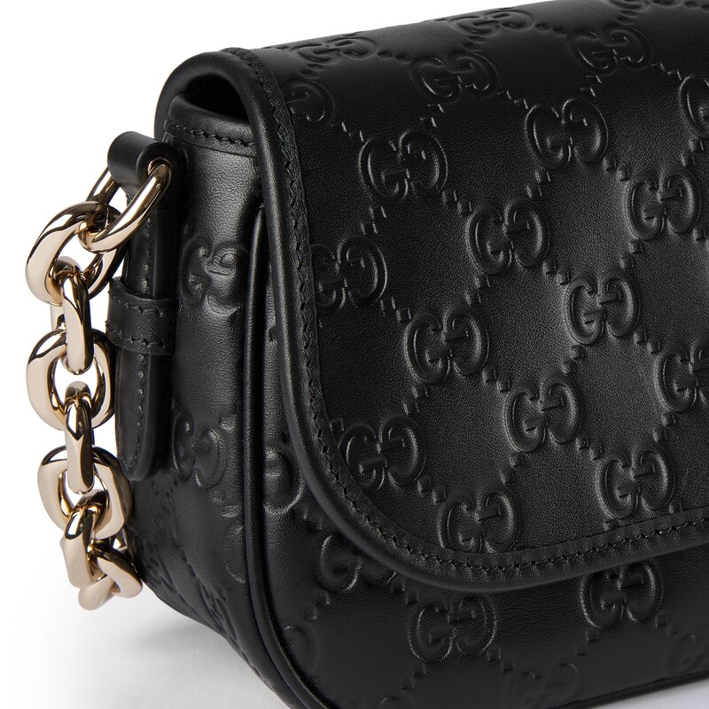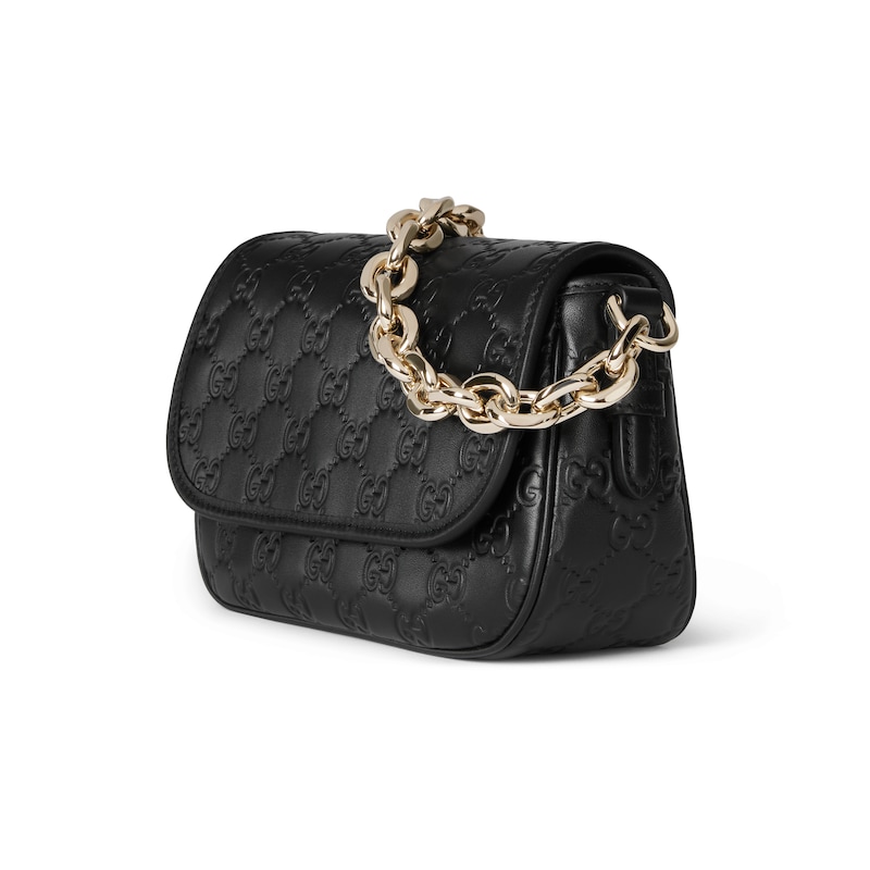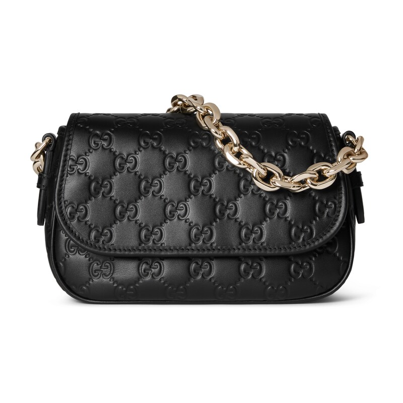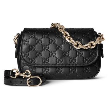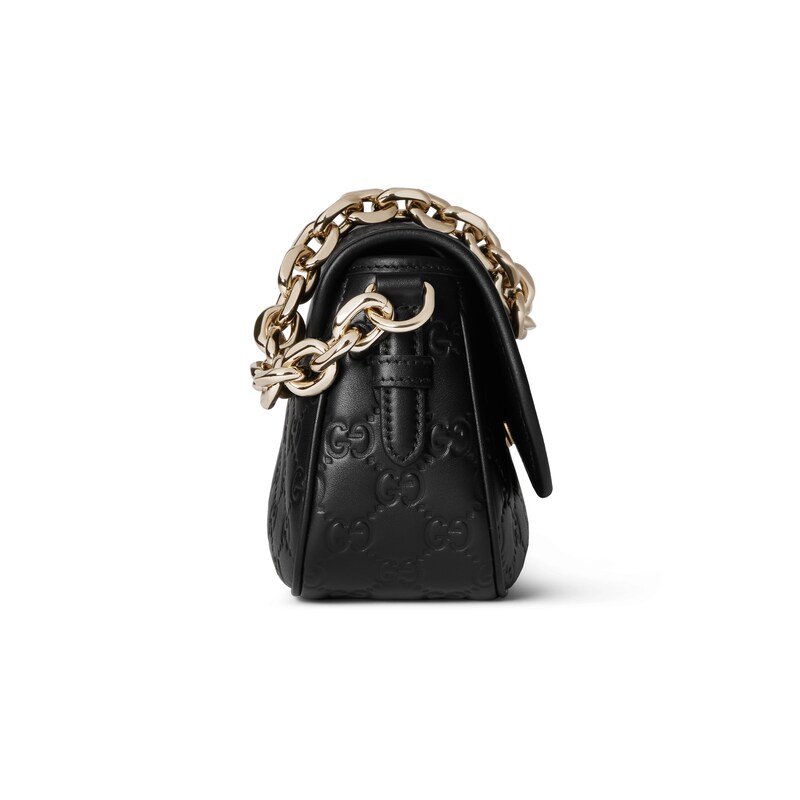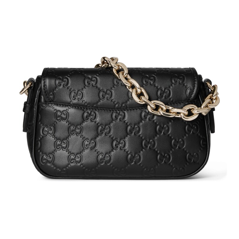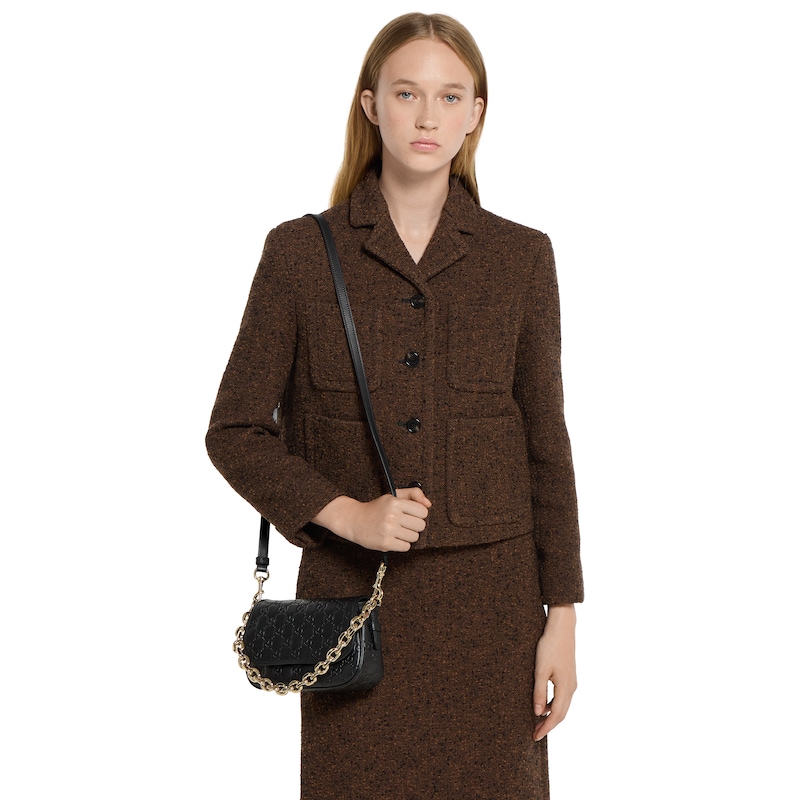 2025秋冬系列, 全新GG Emblem系列焕新诠释品牌的隽永优雅风范和精湛工艺。设计精心搭配链式肩带,并随附可调节牛皮革肩带。