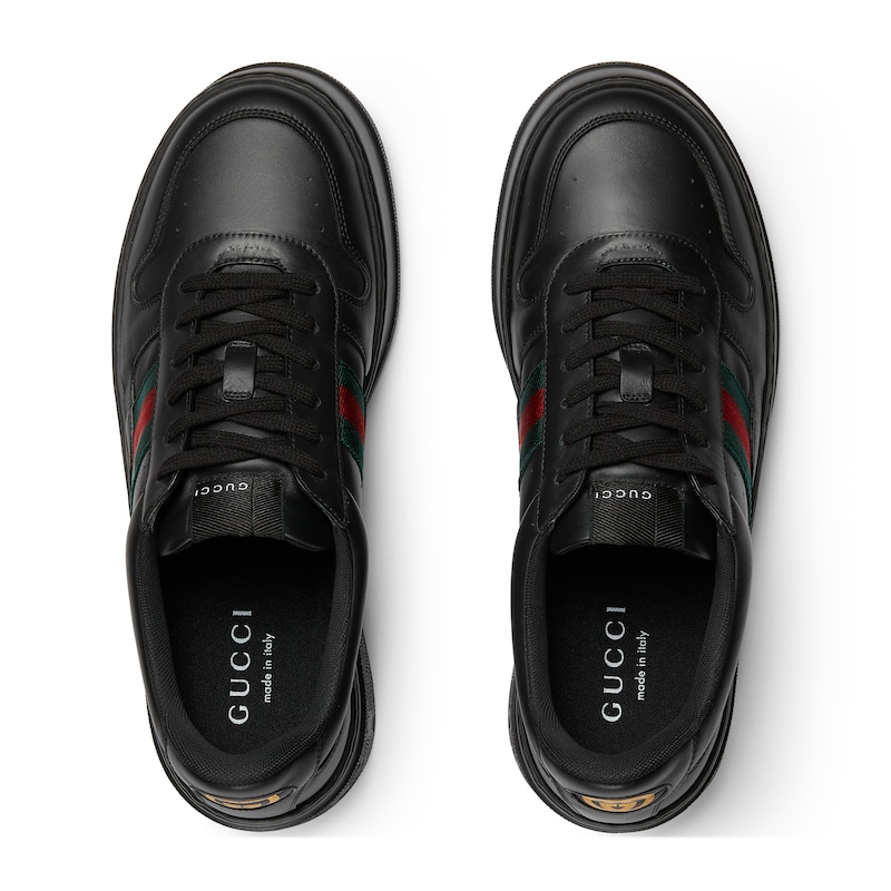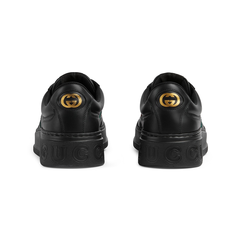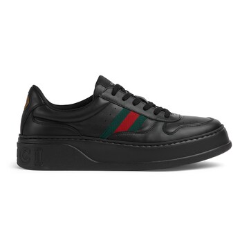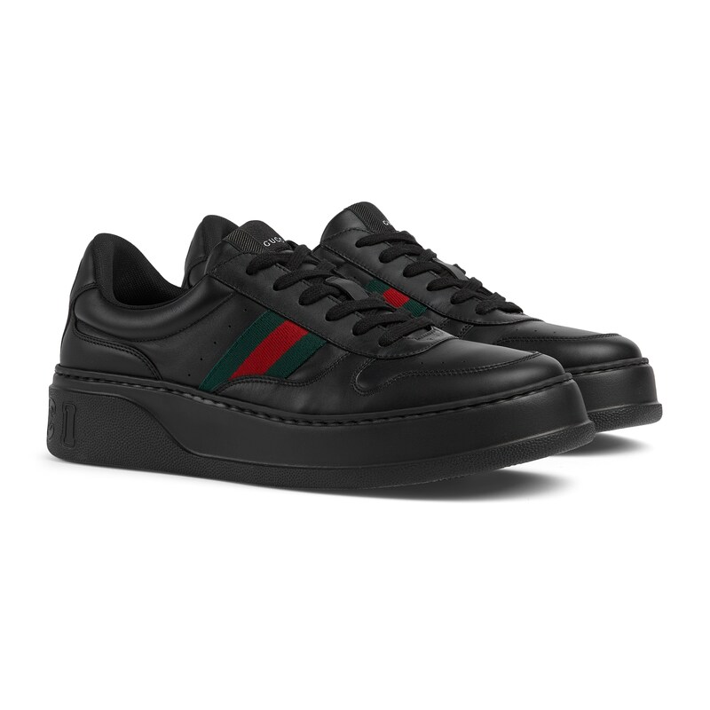 2025秋冬系列, 这款运动鞋采用厚底结构,巧妙运用廓形设计、配色和材质三重元素,彰显复古风范。这款鞋履选用皮革搭配织带细节,配以橡胶鞋底设计更添精致魅力。