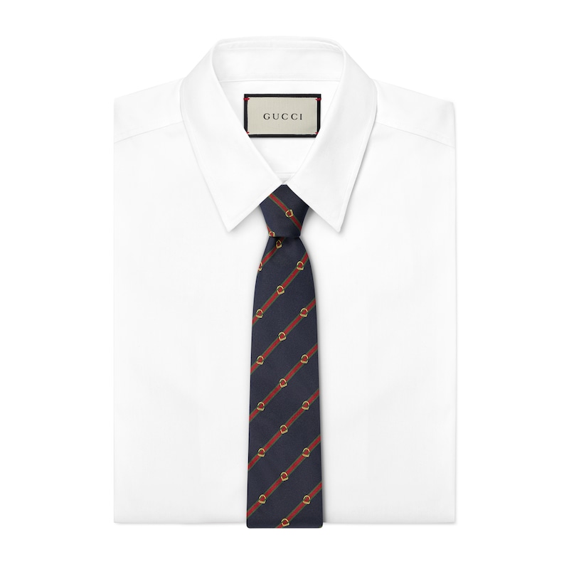 这款领带采用马镫桑蚕丝提花面料匠心打造,致敬品牌马术本源,为2025秋冬系列再添新作。互扣式双G与马镫刺绣交相辉映,为单品添注品牌内涵。