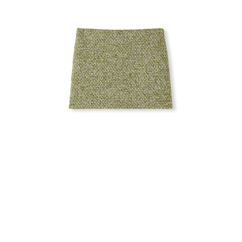 这款迷你半身裙选用绿色和象牙白色羊毛棉结子绒精制而成,为2025秋冬系列增添亮眼力作。这款单品采用全衬里设计,背面拉链开合令整体造型魅力倍添。
