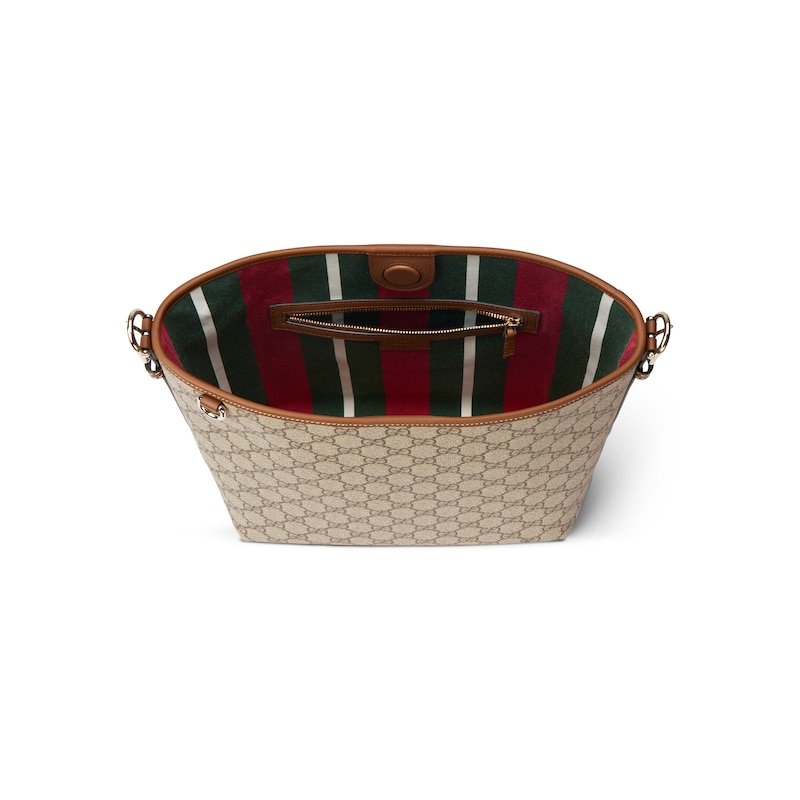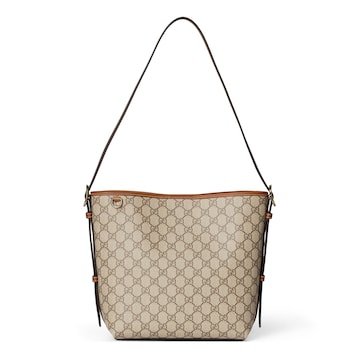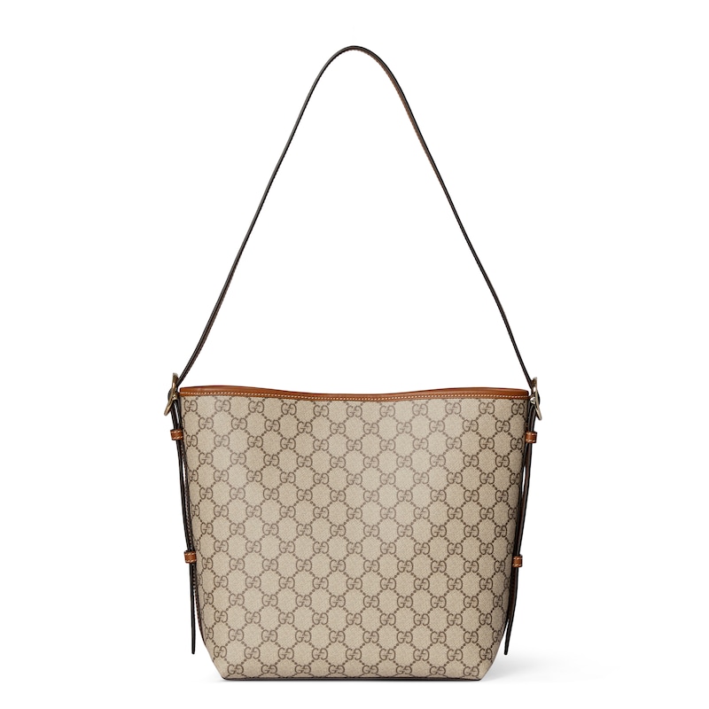 GG Emblem系列焕新诠释品牌的隽永优雅风范和精湛工艺。这款肩背包甄选标志性GG字母交织图案涂层织物,搭配织带棉质衬里,一展精致魅力。