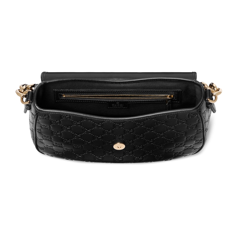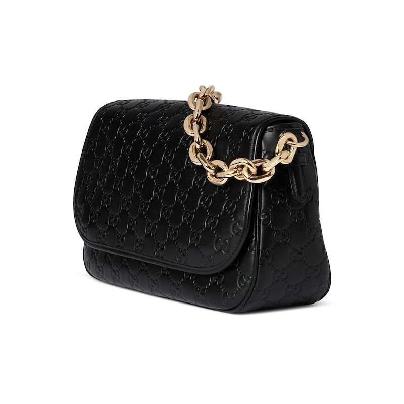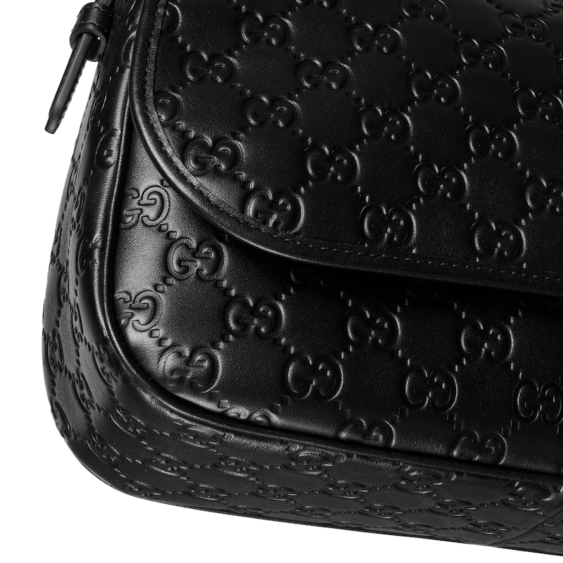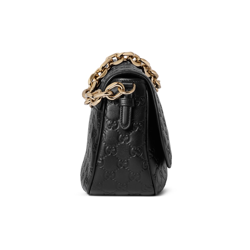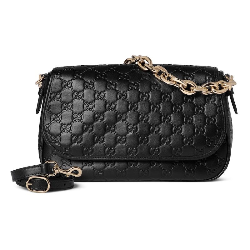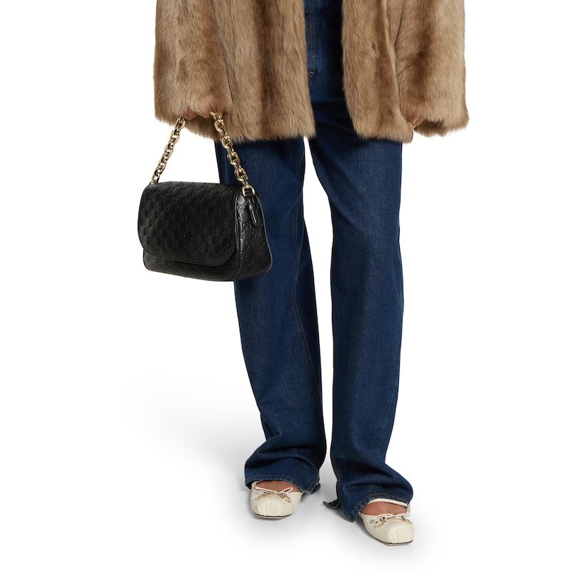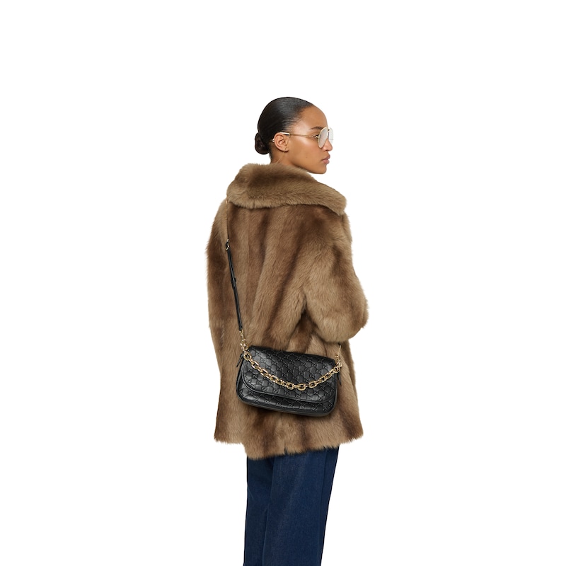 2025秋冬系列, 全新GG Emblem系列焕新诠释品牌的隽永优雅风范和精湛工艺。设计精心搭配链式肩带,并随附可调节牛皮革肩带。