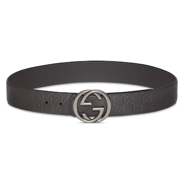 这款男士腰带亮眼吸睛,是2026早春系列之一。腰带扣设有一个销钉,可轻松翻转互扣式双G造型配件。钯金色调饰面更显精致格调。