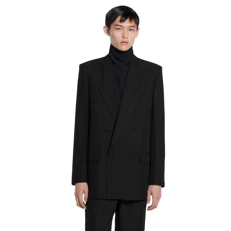 2025秋冬系列巧妙运用利落构造和精巧细节焕新诠释经典剪裁风格。这款双排扣夹克匠心采用戗驳头与包扣设计,搭配同色调GG衬里。翻盖口袋和贴边胸袋令整个设计魅力更显。
