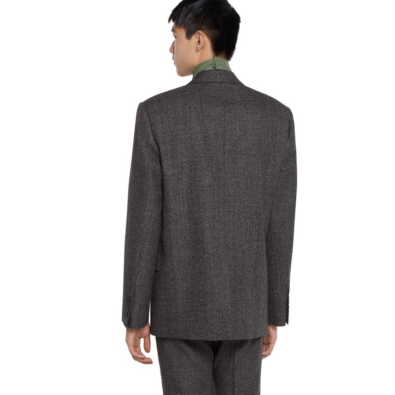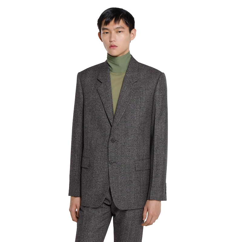 2025秋冬系列融合精致面料与经典英式正装元素,巧妙呈献经典线条设计,赋予廓形别样风采。这款单排扣夹克匠心采用平驳头设计,搭配翻盖口袋与一个贴边胸袋。全衬里设计以全毛衬工艺匠心打造,诠释别样风尚。