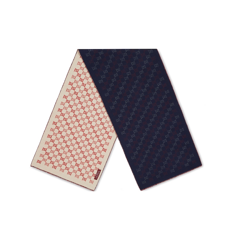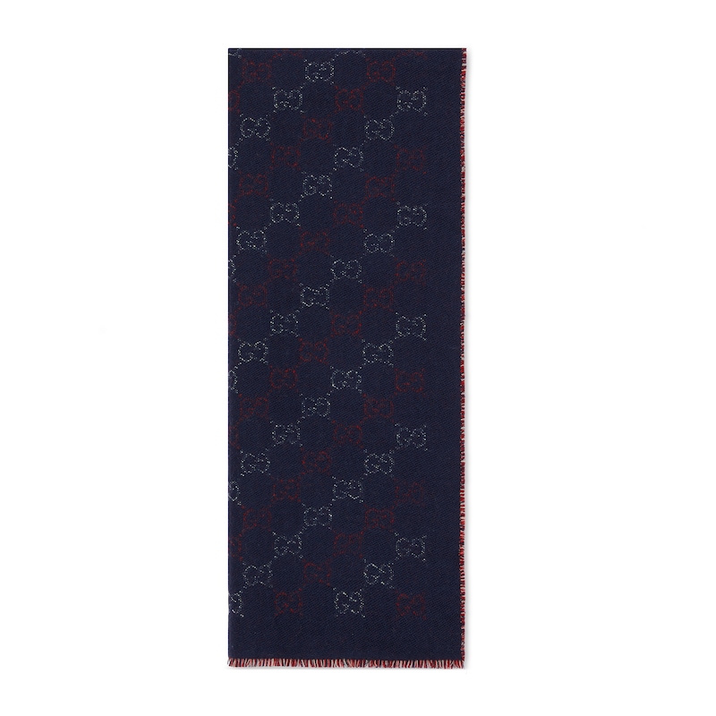 2026早春系列男士软配饰植根于品牌典藏设计,匠心结合丰蕴传承与现代风尚。这款柔软围巾以GG羊毛提花面料打造,匠心缀饰流苏滚边。