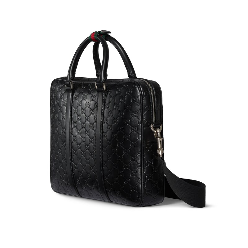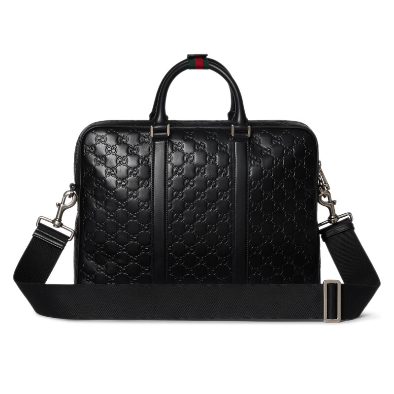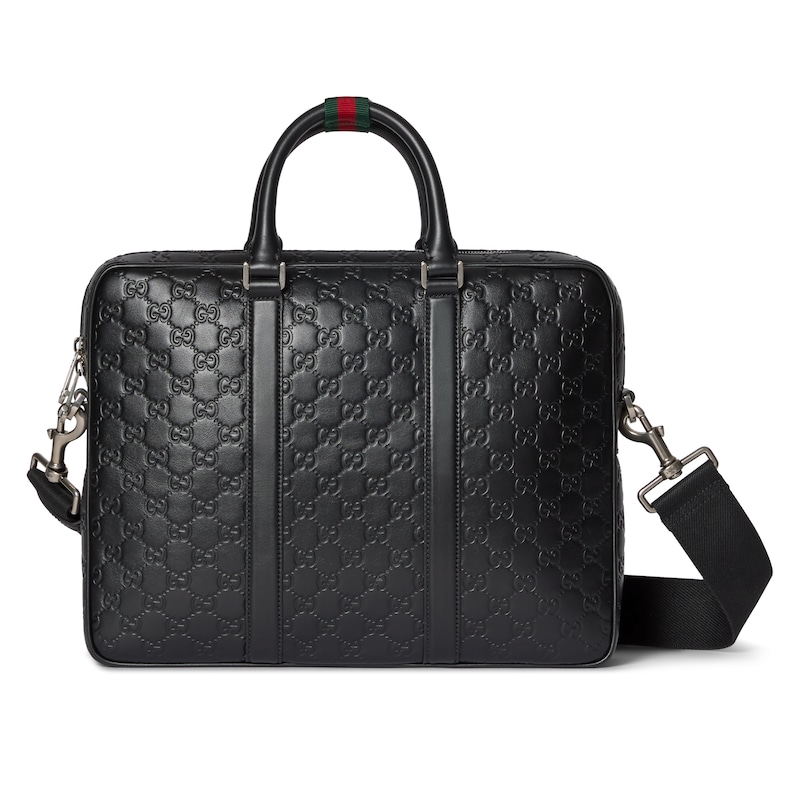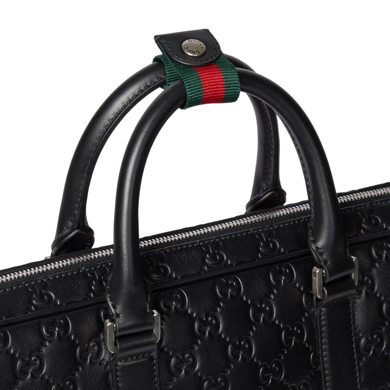 GG Emblem系列以饰GG印花压纹图案光面皮革焕新演绎品牌历久弥新的优雅风范和精湛工艺。此系列匠心呈献公文包廓形设计,缀饰织带提环细节,令整个设计愈发丰满。