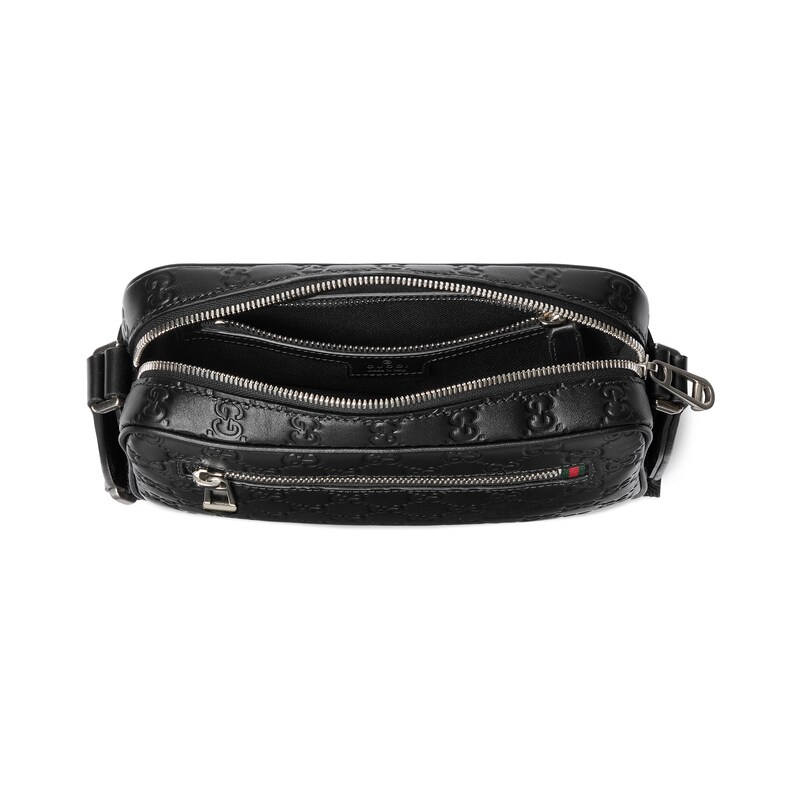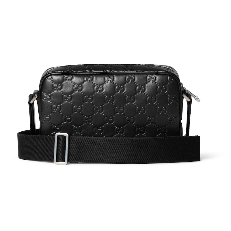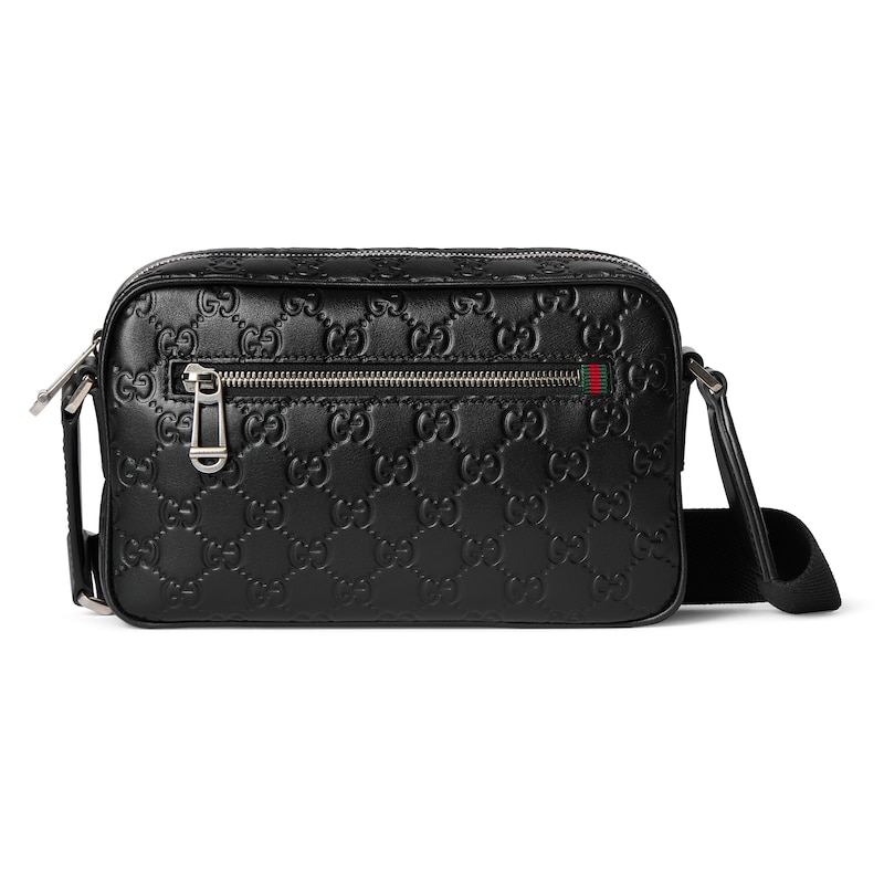 GG Emblem系列以饰GG印花压纹图案光面皮革焕新演绎品牌历久弥新的优雅风范和精湛工艺。这款斜挎包配有一根可拆卸可调节肩带,背携方式灵活多样。