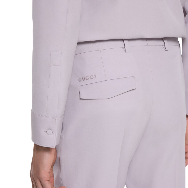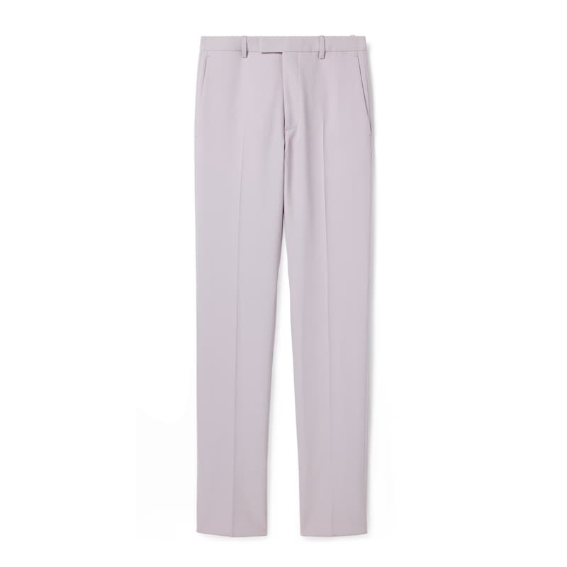 2025秋冬系列, 基础正装单品经由精巧配色和精致廓形焕新演绎。这款长裤选用直筒版型,背面饰以开衩细节,搭配帘型腰衬腰头,提升造型格调。