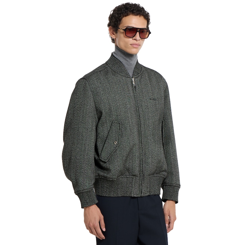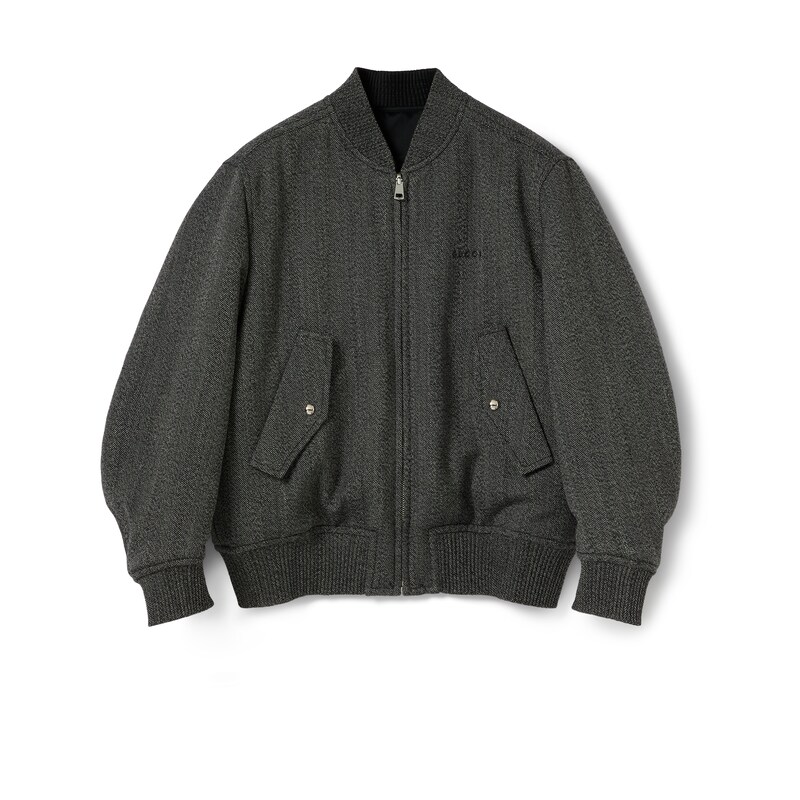 2025秋冬系列以别出心裁的自在风范重构正装美学。这款飞行员夹克巧妙融合休闲廓形与精致细节,采用人字纹羊毛花线纹理匠心打造,搭配纽扣开合口袋。罗纹滚边与拉链开合更添考究风范。