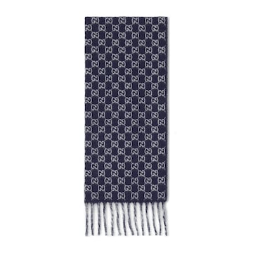 品牌桑蚕丝配饰系列秉承经典,以华贵材质、精湛工艺与清新色调焕新演绎GG、织带、Flora花卉、竹节、马衔扣及马术元素等品牌经典图案。这款围巾以GG羊毛山羊绒混纺面料打造,匠心缀饰流苏滚边。