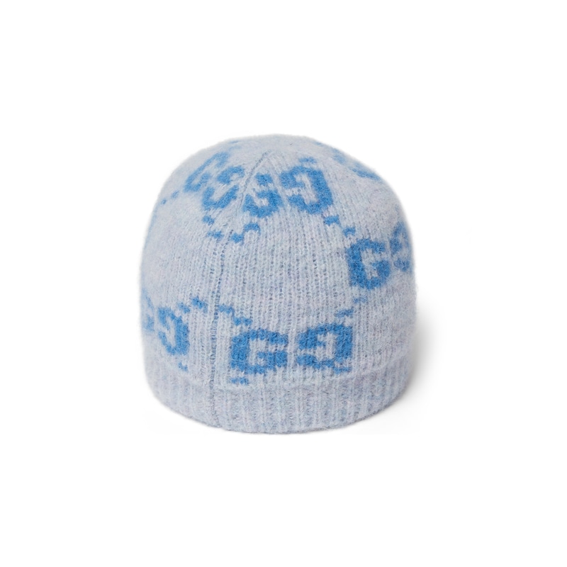 2026早春系列女士软配饰焕新诠释品牌标志性图案。这款帽子以羊驼毛混纺面料针织而成,匠心缀饰GG图案。