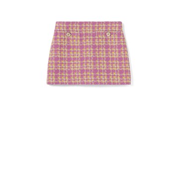 2026早春系列女士成衣以春日淡雅色调一展新季魅力。这款半身裙甄选羊毛结子绒打造,缀饰互扣式双G金属纽扣。