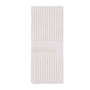 品牌桑蚕丝配饰系列秉承经典,以华贵材质、精湛工艺与清新色调焕新演绎GG、织带、Flora花卉、竹节、马衔扣及马术元素等品牌经典图案。这款围巾以柔软的羊毛山羊绒混纺面料打造,缀饰Gucci标识刺绣,一展别致韵调。