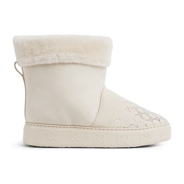 这款由绒面材质打造的女靴兼具舒适性与典藏美。柔软的美利奴羊毛衬里增添一抹温暖精致感,与众不同的GG橡胶鞋底醒目耀眼,品牌经典字母交织图案焕发时髦光彩。