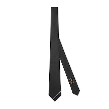 品牌桑蚕丝配饰系列秉承经典,以华贵材质、精湛工艺与清新色调焕新演绎GG、织带、Flora花卉、竹节、马衔扣及马术元素等品牌经典图案。这款领带以桑蚕丝匠心打造,缀饰斜纹马衔扣提花。