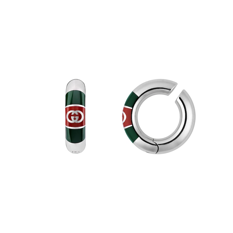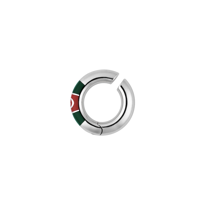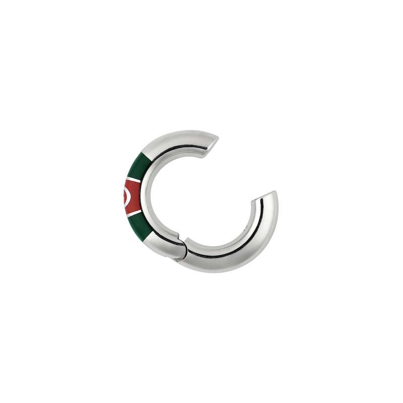 品牌银饰珠宝系列以华贵材质、精湛工艺与清新色调焕新诠释标志性图案。这款单边耳环巧妙融入圆柱形织带细节,成就系列典范之作。