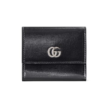 GG Marmont系列新进双色款式于外侧选用金属质感皮革,于内侧采用撞色设计。缀饰水晶双G细节点亮令这款钱包熠熠生辉。