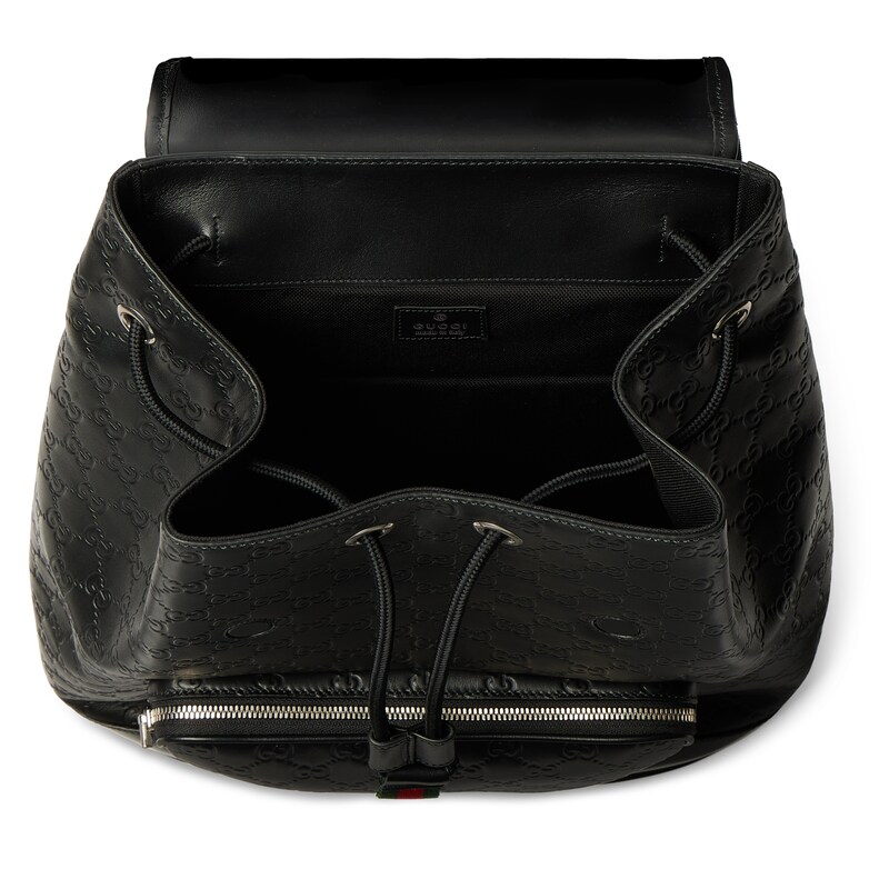 GG Emblem系列以饰GG印花压纹图案光面皮革焕新演绎品牌历久弥新的优雅风范和精湛工艺。这款全新系列的背包功能多样,配备一个带衬垫的笔记本电脑隔层,背面设有带衬垫的网布背片。织带提环细节令整个廓形魅力更显。