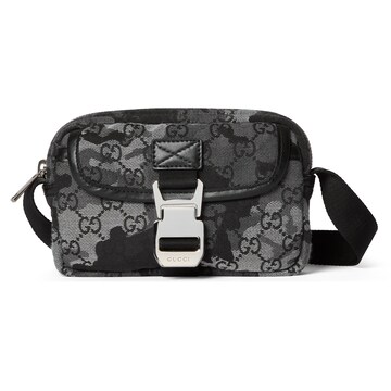 男士小皮具系列以灰色和黑色迷彩印花GG帆布演绎一系列动感十足的包型,辅以轻盈的构造、符合人体工学的功能性设计以及实用细节。这款迷你手袋以大理石纹GG帆布匠心打造,巧妙融入黑色皮革滚边。