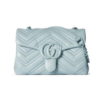品牌标志性GG Marmont系列甄选柔软牛皮革打造迷你肩背包,成就别致廓形。双G造型配件搭配同色调珐琅饰面,令整体设计更臻完满。