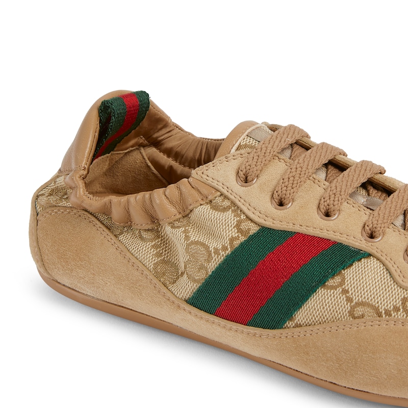 Gucci Shift系列全新上市,轻盈设计焕新诠释运动风尚。这款运动鞋以流畅廓形搭配条纹织带与弹性后跟设计,诠释精致动感,随心装卸的鞋跟轻松打造日常百搭造型。