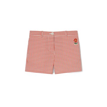 品牌童装系列以经典材质、精湛工艺与清新色调焕新诠释标志性图案。这款儿童短裤甄选方格纹棉布打造,精心缀饰MR.MEN™ LITTLE MISS™品牌角色的插画作品。