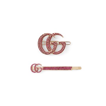 2026早春女士系列巧妙融合品牌典藏设计与风靡20世纪90年代的华丽风尚。这套发夹以金色调金属打造,匠心缀饰耀目水晶。