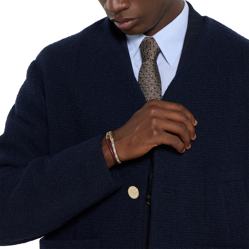 品牌时尚珠宝系列以华贵材质、精湛工艺与清新色调焕新诠释标志性图案,这款饰GG细节双层手链便是其中一款力作。