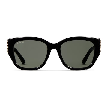 品牌眼镜系列秉承经典,以甄选材质、精湛工艺与清新色调焕新演绎GG、织带、竹节、马衔扣及马术元素等品牌经典图案。这款猫眼造型太阳眼镜采用贴合设计,镜圈以黑色醋纤匠心打造,巧妙融入Gucci标识细节。