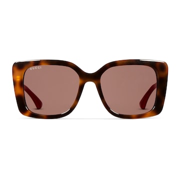 品牌眼镜系列秉承经典,以甄选材质、精湛工艺与清新色调焕新演绎GG、织带、竹节、马衔扣及马术元素等品牌经典图案。这款方形镜框太阳眼镜采用贴合设计,镜圈以棕色玳瑁醋纤匠心打造,巧妙融入织带镜腿和互扣式双G细节。