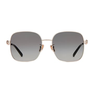 品牌眼镜系列秉承经典,以甄选材质、精湛工艺与清新色调焕新演绎GG、织带、竹节、马衔扣及马术元素等品牌经典图案。这款方形镜框太阳眼镜以金色调金属打造,配以饰马衔扣细节镜腿。